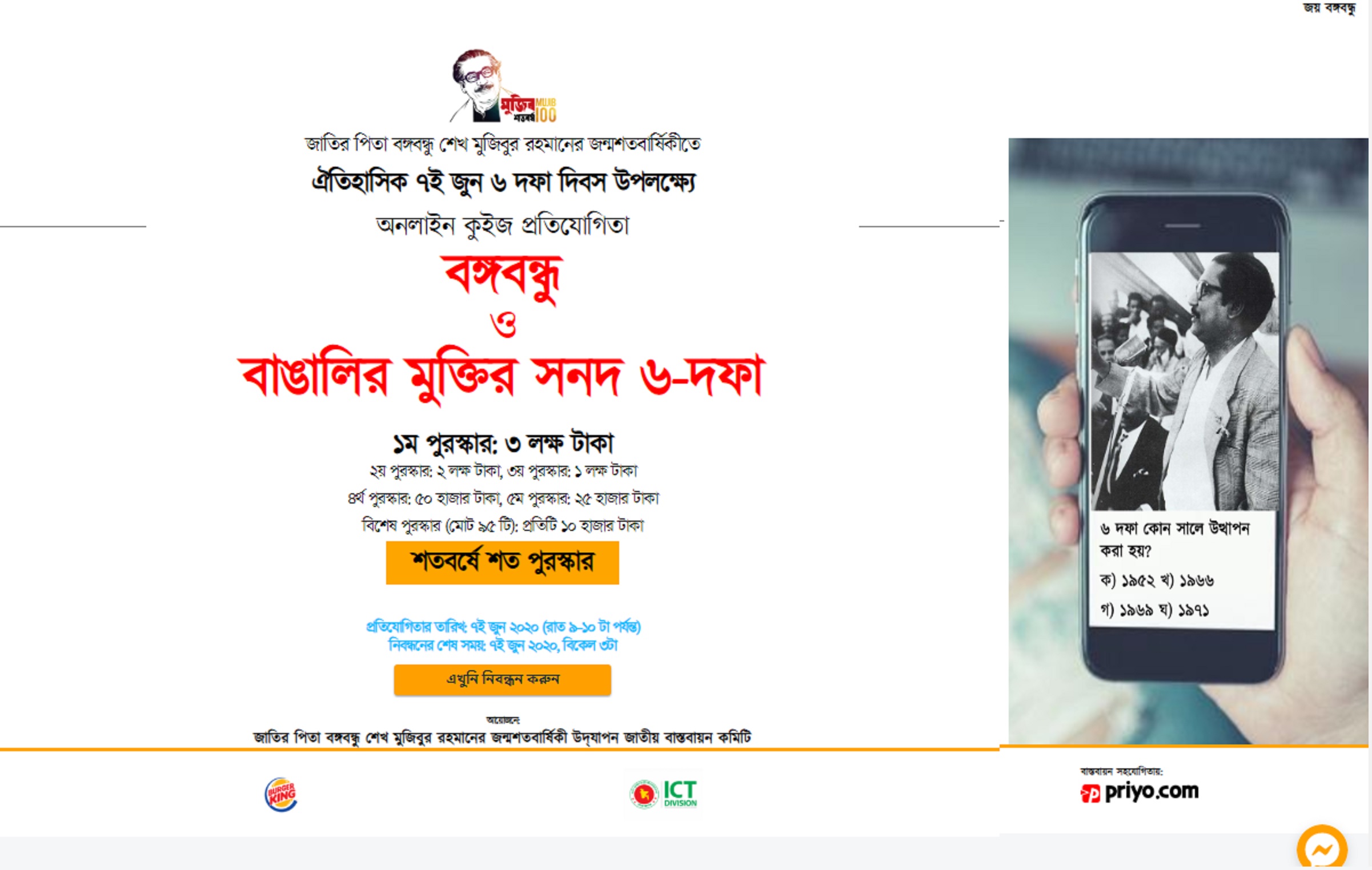 ঐতিহাসিক ৬-দফা দিবস উপলক্ষ্যে অনলাইন কুইজ প্রতিযোগিতা